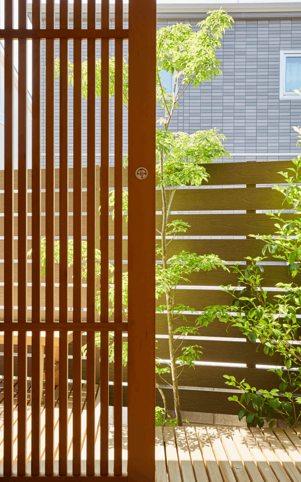 - 室内でも室外でも「格子」を効果的に用いて、差し込む光を柔らかくデザインします。